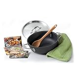 (More customer reviews)We received this Slow cooking set for free when we bought the Calphalon tri-ply stainless steel set. It is sad to say but we use this particular piece of cookware more than any of the other pieces from the set. It cooks evenly, has great temperature control, and you really have to try to burn something to have it stick to this. It is not non-stick but it does not stick like stainless steel does. The towel that comes with it is also very nice. So nice that we bought a couple different sets of them.