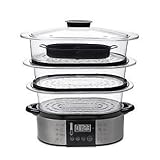Thestainless steel steam cooker is helpful to your home cooking. Great steam cooker for your family. 3 layer steam cooker which can be changed into 1 or 2 layer. All removable parts are dishwaser safe. makes healthy cooking easier than ever. Steaming foods is a great way to keep from adding additional oils and fats and retain essential nutrients. Large-capacity steaming baskets accommodate a variety of foods-even rice. The 3 stackable steaming baskets let you cook a complete meal, entree and side dishes, all in one appliance.