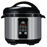 Significantly cut cooking times with the help of this 5-quart electric pressure cooker. It combines steam, heat, and pressure--while retaining all the nutrients and flavor of food--for delicious home-cooked meals like vegetable stew, lentil soup, and Texas-style chili. The pressure cooker provides a removable nonstick cooking pot that delivers even heat distribution, and its push-button digital control panel makes it easy to select from low or high pressure and a variety of cooking functions. Choose the warm function to reheat or keep cooked food warm, the brown function to brown food before cooking it under pressure, the steam function to boil liquid for steaming food or cooking rice, or the slow-cook function with delay for slowly cooking food--great for having dinner ready and waiting after a long day at the office. Other highlights include a locking mechanism for safety, a 24-hour digital timer with automatic shut-off, stay-cool side handles for convenient transport, and sleek-looking stainless-steel housing that stays cool to the touch. The multi-function pressure cooker measures approximately 13 by 12-1/5 by 14-4/5 inches.